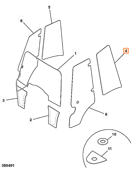 827/80269 Ľave bočne sklo JCB 3CX, 4CX